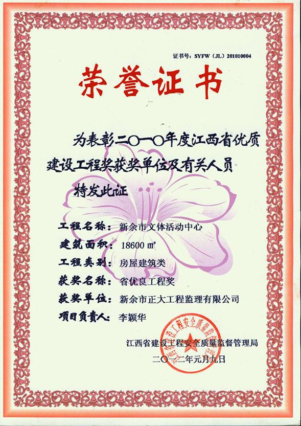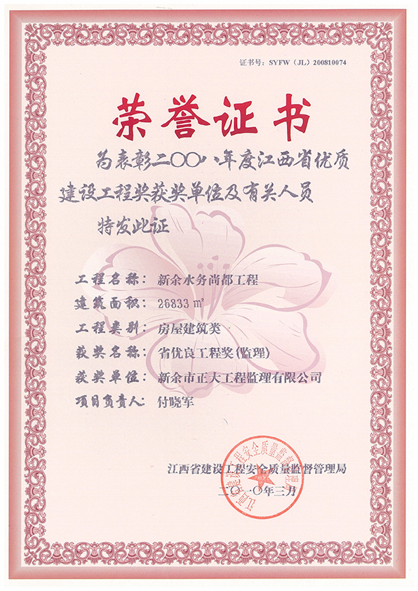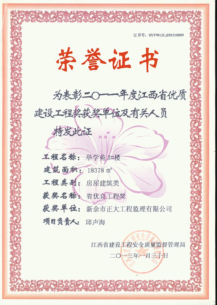 新余市正大工程監(jiān)理有限公司依托新余市建筑設(shè)計(jì)院,于1995年11月成立,是新余市開展監(jiān)理工作最早的監(jiān)理單位,本公司具有建設(shè)部核發(fā)的房屋建筑工程甲級監(jiān)理資質(zhì)、市政公用工程乙級監(jiān)理資質(zhì)、國家人防辦核發(fā)的人防工程監(jiān)理乙級資質(zhì)。我公司始終堅(jiān)持“客戶至上、質(zhì)量第一、信守合同”的經(jīng)營理念;追求“為社會創(chuàng)造價(jià)值、為業(yè)主創(chuàng)造效益、為自身謀求發(fā)展”的經(jīng)營宗旨;遵循“守法、誠信、公正、科學(xué)、優(yōu)質(zhì)、高效”的工作原則,以雄厚的技術(shù)力量、完善的管理制度、豐富的監(jiān)理經(jīng)驗(yàn)、良好的企業(yè)信譽(yù)迅速成為我市監(jiān)理行業(yè)的一支新銳力量! 查看更多>>